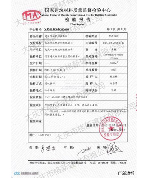 巨新墻板90型墻材是建筑行業的新型墻體材料,產品主要應用于現代樓宇框架結構中的室內與室外隔墻。巨新墻板與普通砌體相比在隔音、防火、保溫、防潮、抗震性能上更具有優越性。巨新牌輕質復合墻板的各項性能,符合國標GB/T23451-2023,行標JG/T169-2016技術要求。